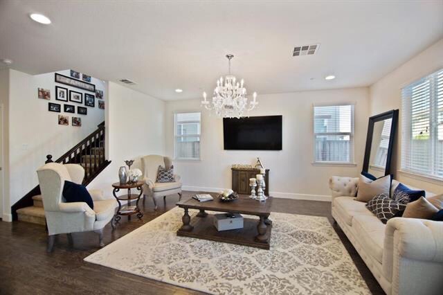 Rare property! This was the original model home of the builder. Corner Unit Craftsman, lots of natural light and all the best upgrades. Spacious 4 Bedrooms, 3 baths. Attached 2 car garage & extra storage and plenty of guest parking. Large wrap around hardwood front porch for entertaining. Built in 2008 with stainless steel appliances, recessed lighting, granite countertops in the Baths & Kitchen, tile floor with hand laid mosaics, & built in entertainment center in living room. Largest unit in the whole complex with many builder upgrades. High Ceilings, Wall to Wall Carpet, and Multicolor Painted Walls. Wood Plantation Shutters with Window Coverings Incl. Dual Sinks in the Bathroom. Kitchen has stainless steel farm sink with tile backsplash, Gas range and electric oven. Master bedroom has an exquisite Master Bath Glass Shower with a seat and Walk-in Closet with Built-in Shelving. Washer/Dryer/all Appliances incl. Low HOA, this unit only pays 11 months of HOA instead of 12. LOW HOA $255.00